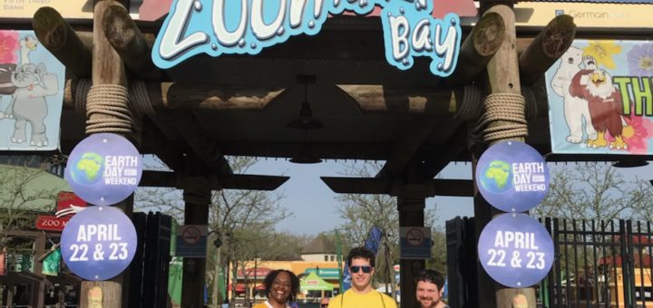 Three Phi Theta Kappans standing before the Columbus Zoo entrance.